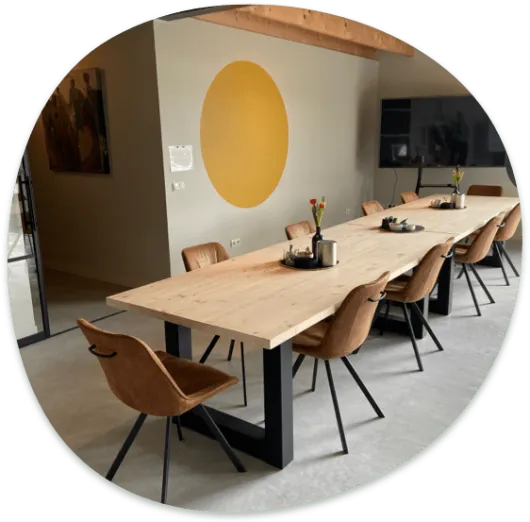 De vergaderboerderij beschikt over een ruime vergaderruimte voor 2 tot circa 14 personen.